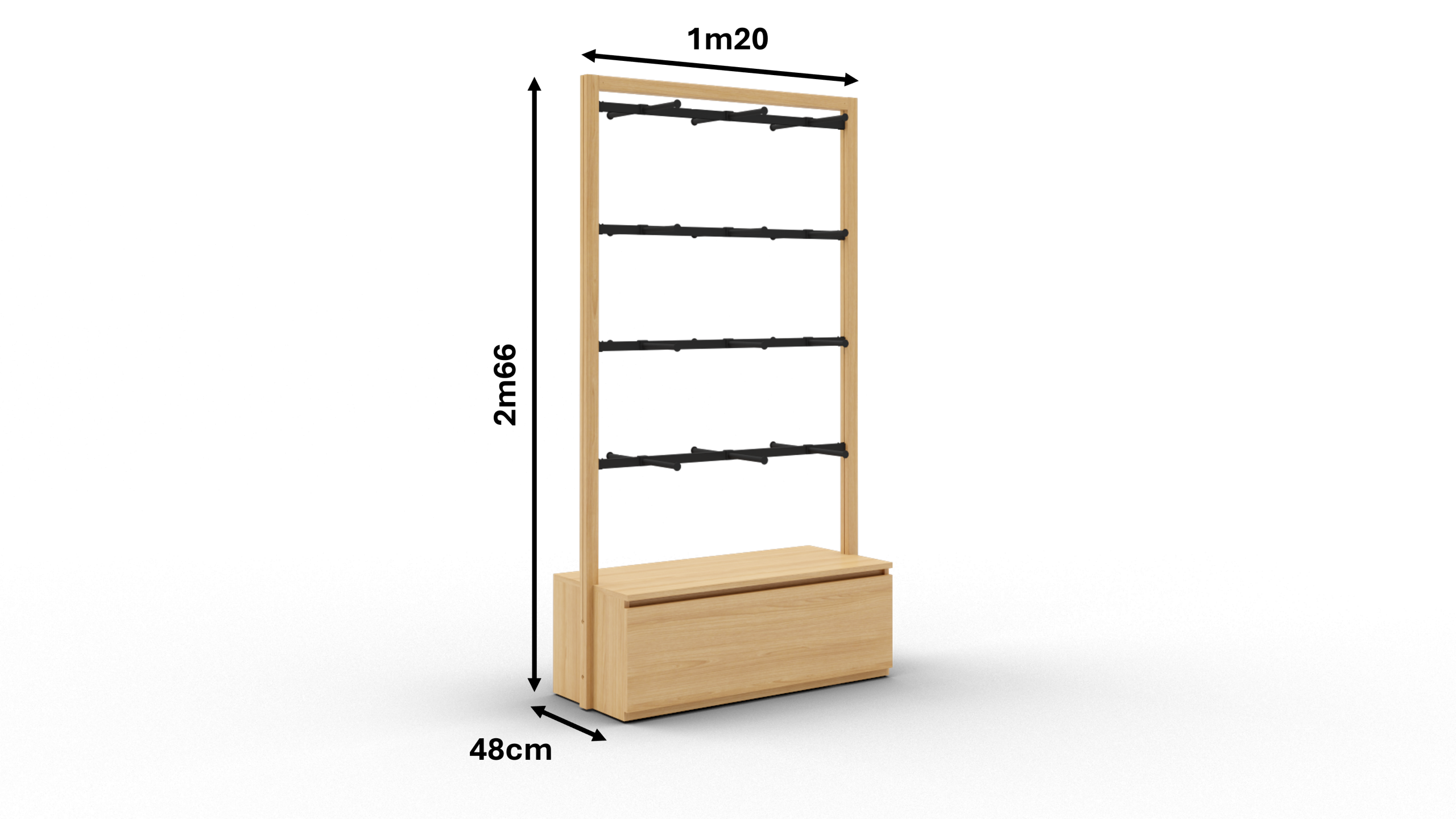 Couleur : Bois, métal noir (barres penderie blanches sur demande)