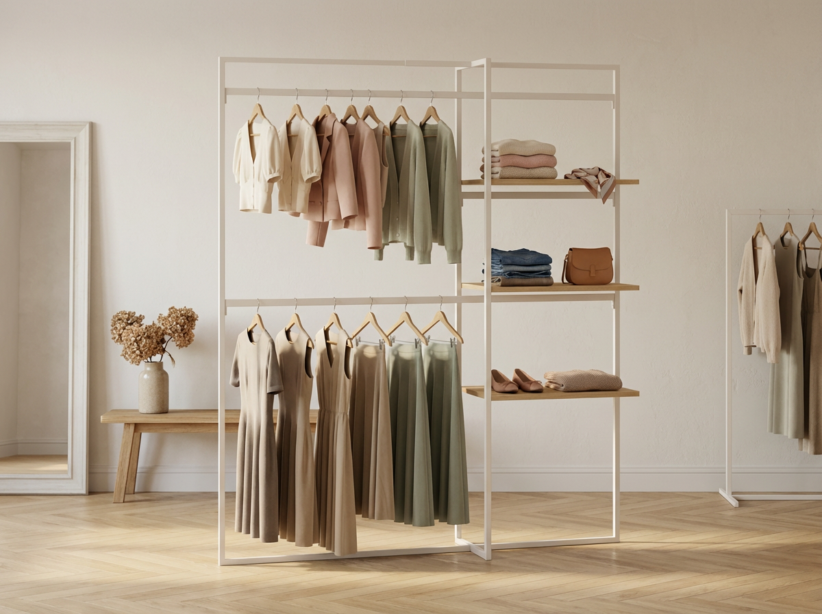 Le portant freestanding haut de gamme conçu par THEVMFACTORY pour sublimer vos collections. Avec son design épuré et sa modularité intelligente, ce profil 360° s’adapte à tous les espaces, offrant une mise en valeur optimale de vos produits, qu’il s’agisse de textiles, d’accessoires ou d’objets d’exception.