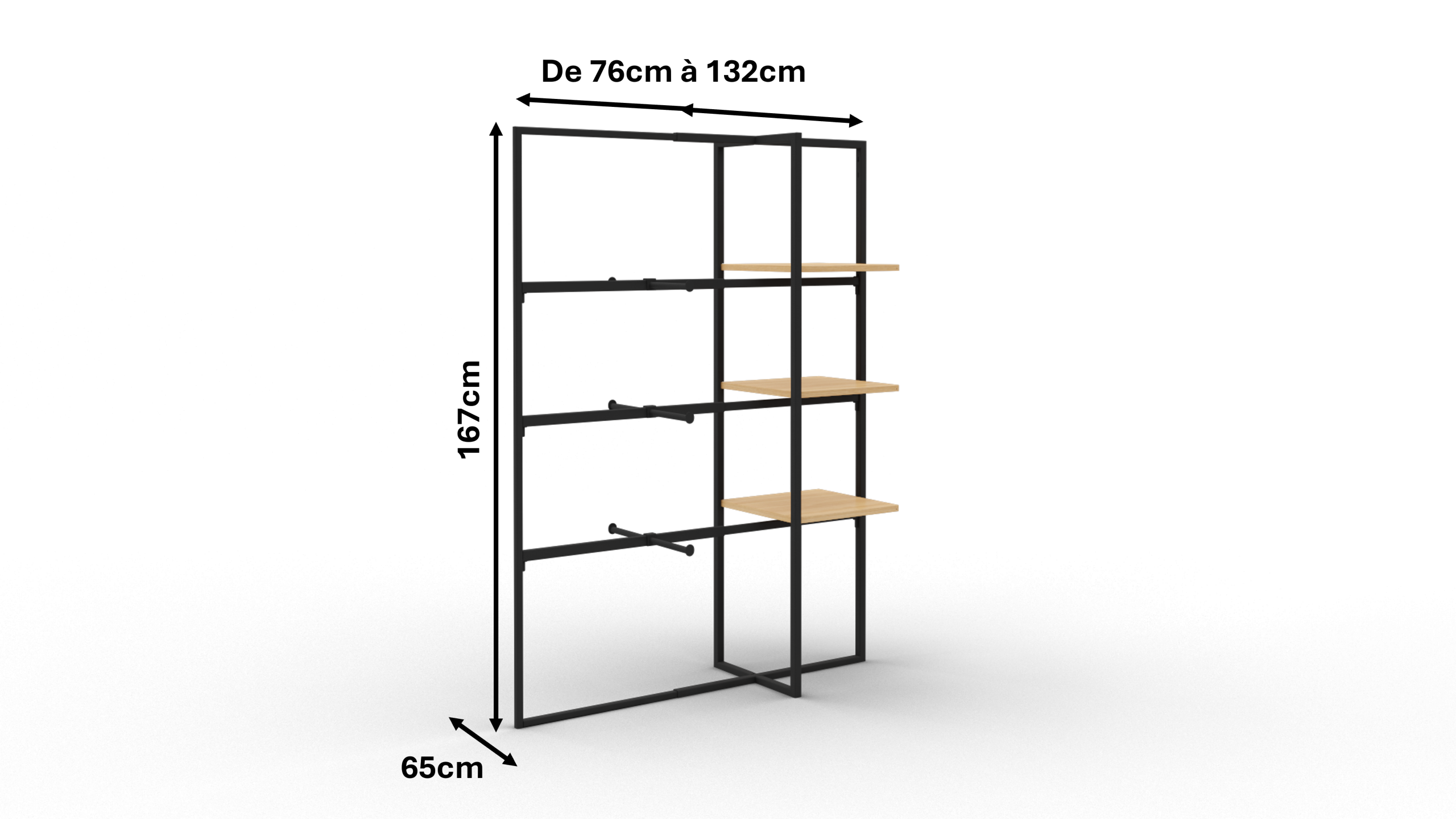 - 3 barres de penderie avec 3 double facing